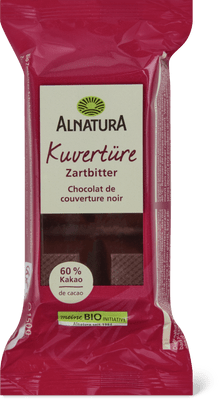 Die Alnatura Bio Kuvertüre Zartbitter kaufe ich regelmässig. Der Geschmack ist top, die Qualität überzeugt. Das Temperieren ist nicht ganz einfach – kleinere Stücke oder Drops wären praktischer. Trotzdem ein sehr gutes Produkt!