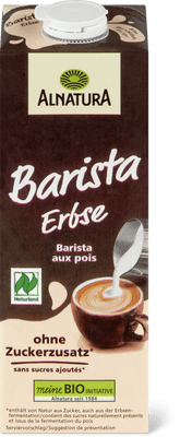Musste mich am Anfang an den erbsigen Nachgeschmack gewöhnen. Enthält sehr viel Eiweiss, darum eine perfekte Milchalternative. Lässt sich wirklich wie Milch aufschäumen.