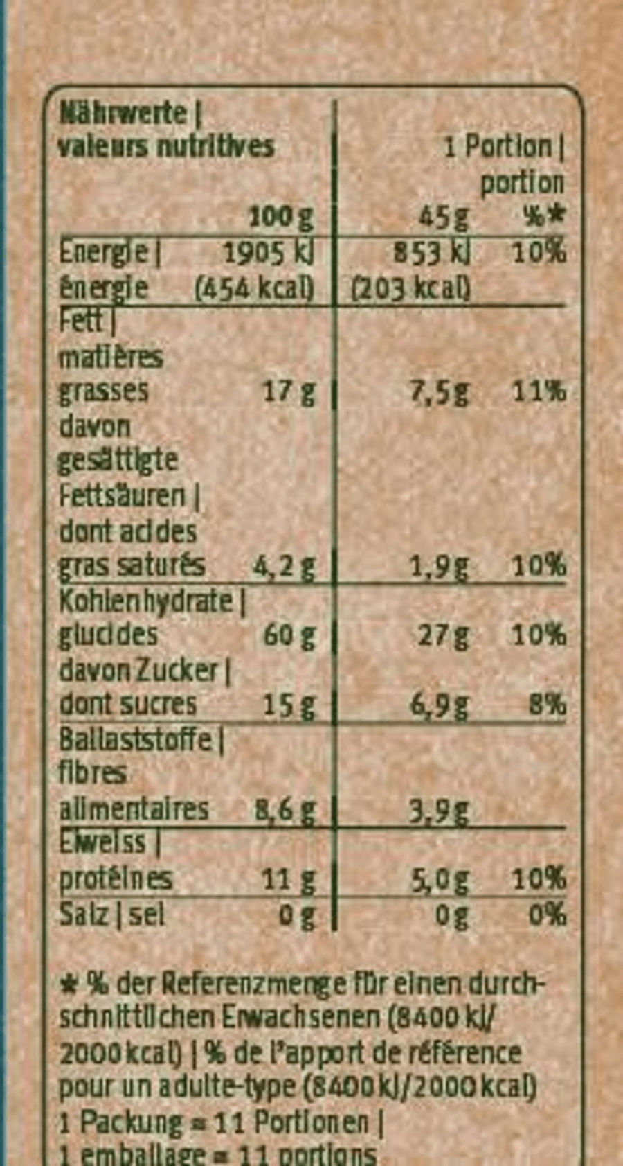 @Rhyfallforelle, 🙄 "Hast die Zutatenliste nicht genau gelesen, Produkt hat 68% Haferflocken, nicht Zucker, und man kann jedes Müesli selber nach seinem Geschmack mit ganzen Nüssen z.B. ergänzen".