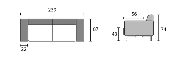für eine andere Variante: Hellgrau, B: 239.0 cm x T: 87.0 cm x H: 74.0 cm