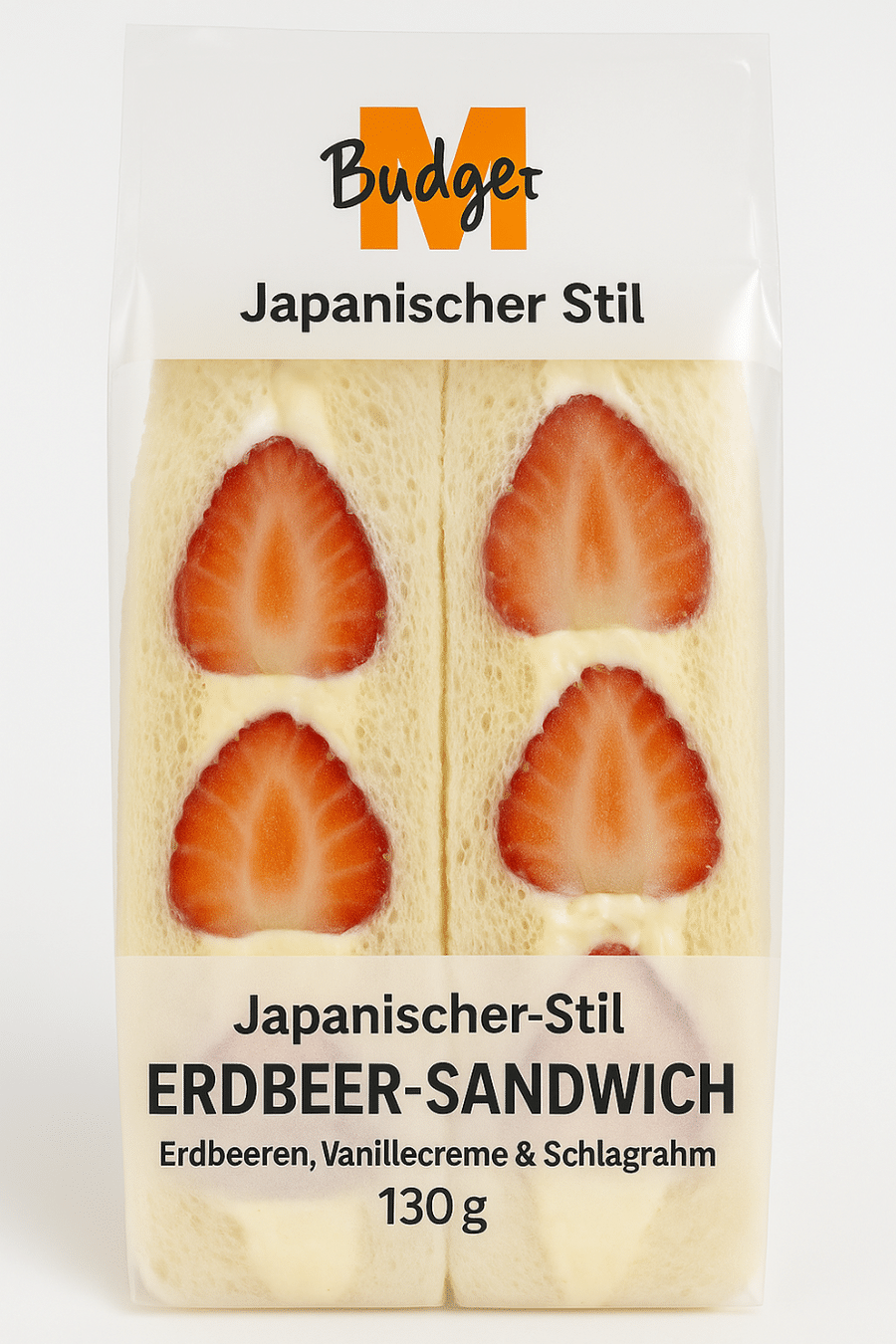 Japanese-Style Erdbeer-Sandwich (weißer Toast mit Schlagrahm, Vanillecreme und frischen Erdbeeren – sehr beliebt in Japan).