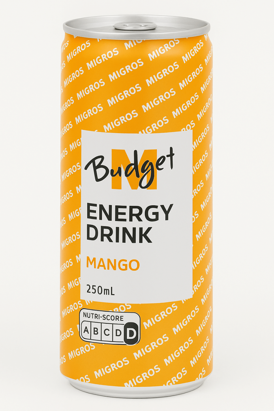 M-Budget Energy Drink Mango – als fruchtige Ergänzung zu den bestehenden Energy-Drink-Sorten.