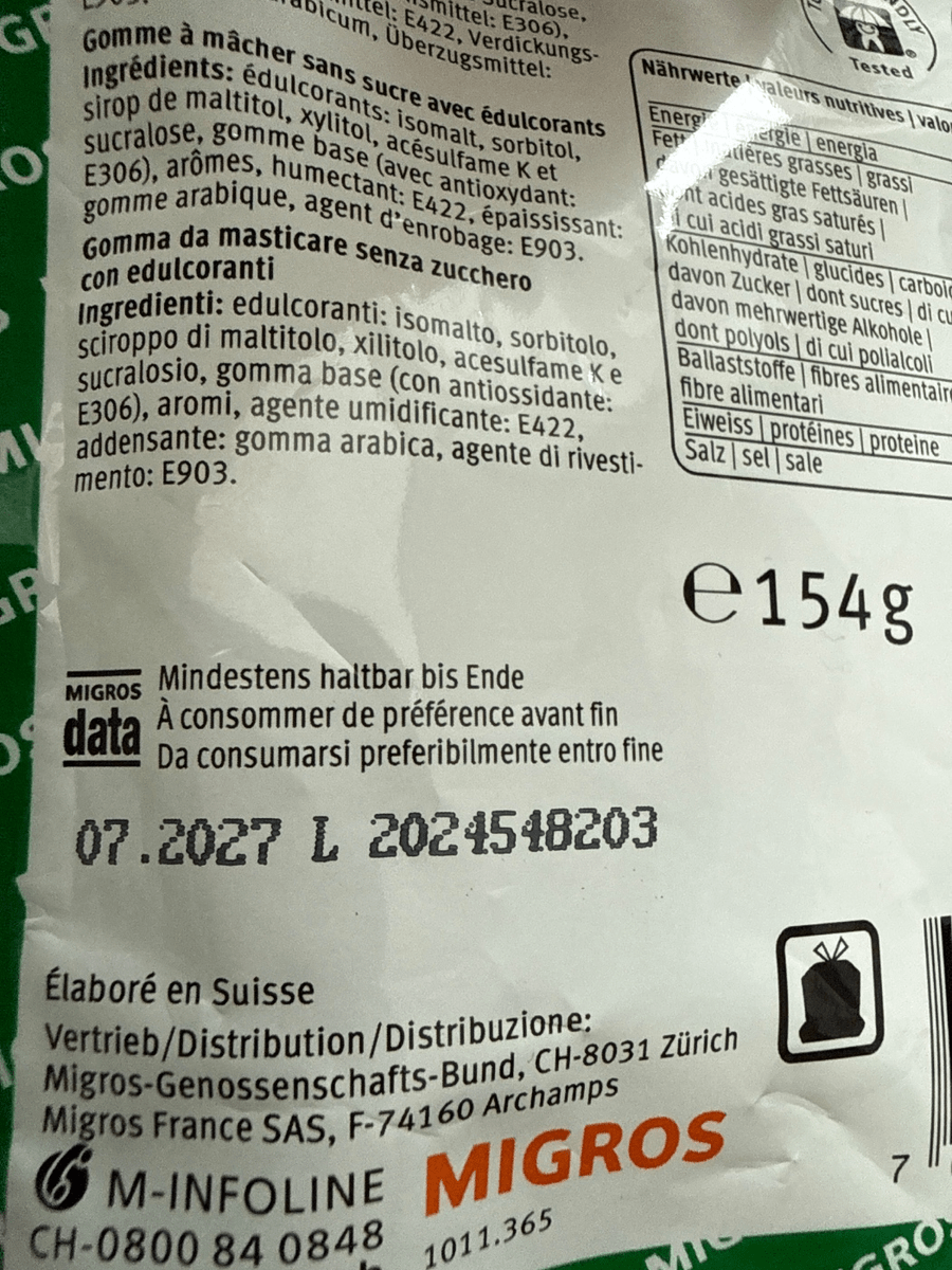 Hi sommerfreude, danke vielmals für deine rasche Rückmeldung. Es macht nichts, dass die Daten nicht mehr vorhanden sind. Deine Beschreibung bezüglich der Probleme mit dem Kaugummi, dass dieser im Mund zerfällt und schnell Geschmack verliert, nehmen wir ernst. Deshalb suchten wir trotzdem den Austausch mit der Fachstelle 😊.