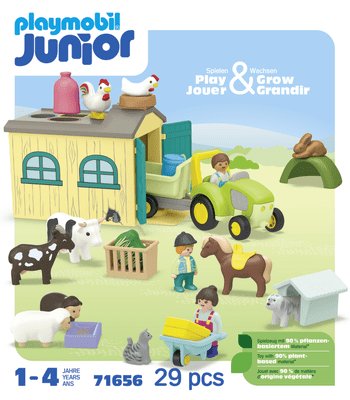 Playmobil Junior Bauernhof-Abenteuer mit Traktor, Anhänger und tierischen Freunde