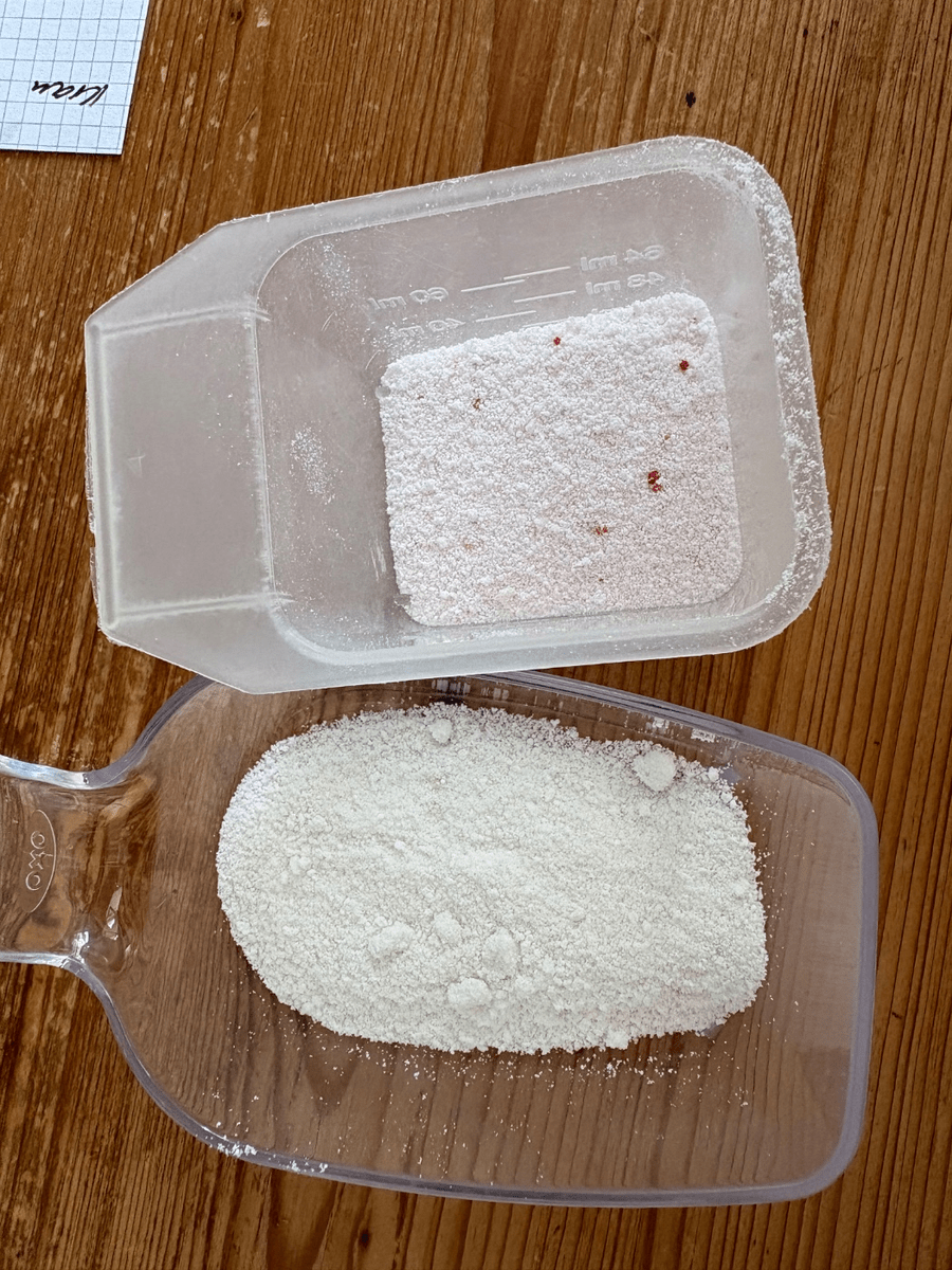 Da kürzlich Aktion war und ich in Eile, habe ich mir zwei Pakete ins Wägeli gepackt und dabei 1x das normale ‚1 for all’ erwischt. Die Packungen sehen fast identisch aus. Aber beim ‚normalen‘ ist das Pulver leicht rosa und riecht komplett anders :