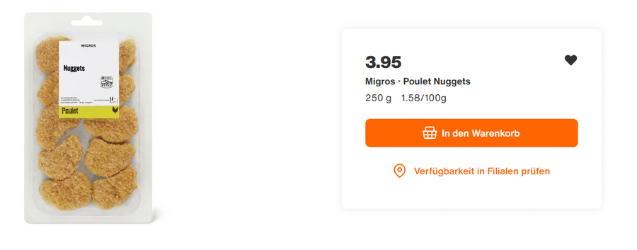 Bezüglich der Poulet-Nuggets sind wir uns nicht ganz sicher, auf welchen Artikel du dich beziehst. Um deiner Meldung nachzugehen, wäre es hilfreich, wenn du uns die Artikelnummer, das Mindesthaltbarkeitsdatum sowie die Chargen-/Lotnummer mitteilen könntest. So können wir weitere Prüfungen vornehmen – vielleicht handelt es sich um eine punktuelle Abweichung. Du kannst uns diese Angaben gerne über das Kontaktformular oder direkt auf der Migipedia-Produktseite der Poulet-Nuggets zukommen lassen. Für deine Mithilfe bedanken wir uns im Voraus bei dir! Liebe Grüsse, dein M-Infoline Team