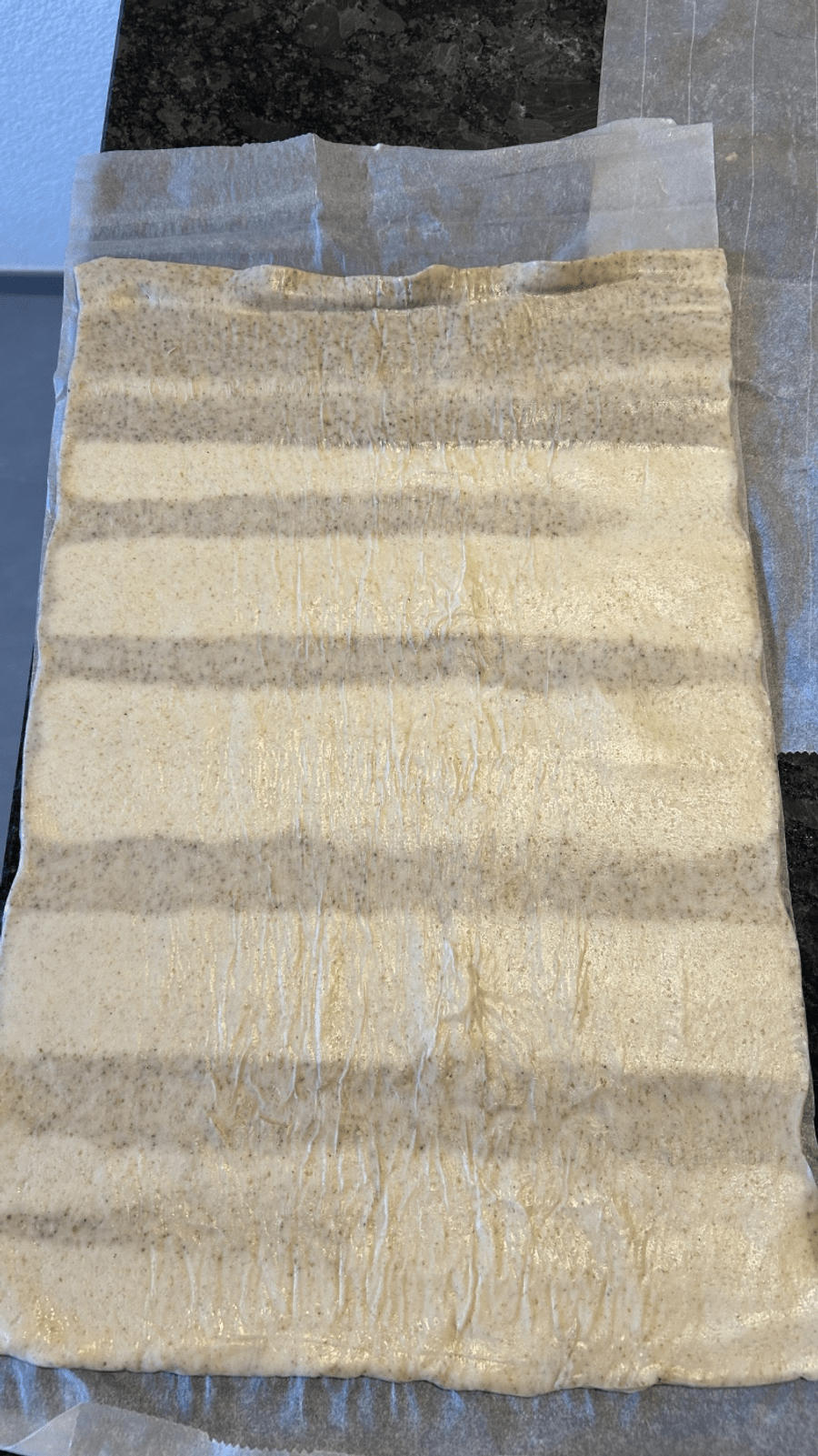 It looks as if the dough has oxidized somehow, but why there? It is evenly distributed on the baking paper.