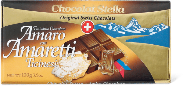 By the way, the Ticino Regional Cooperative has a chocolate bar with Ticino amaretti (Chocolat Stella Amaro con Amaretti, article no. 1001.579).