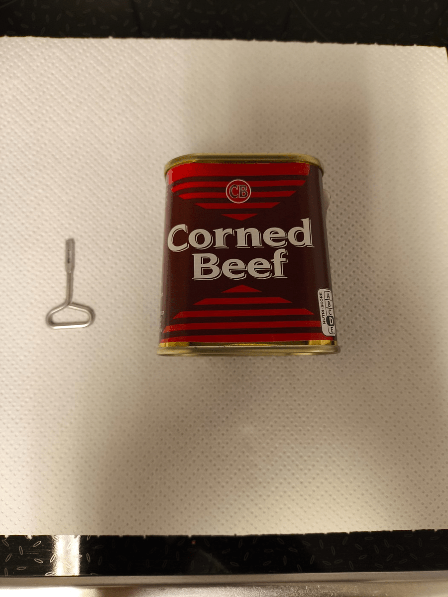 In the meantime, I have bought a second tin of corned beef in the hope that this time I will be able to open it with the key stuck to it.