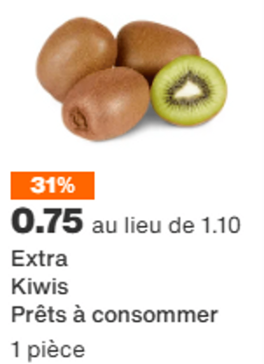 Des promos sur les fruits sans saveur (Kiwis Extra)