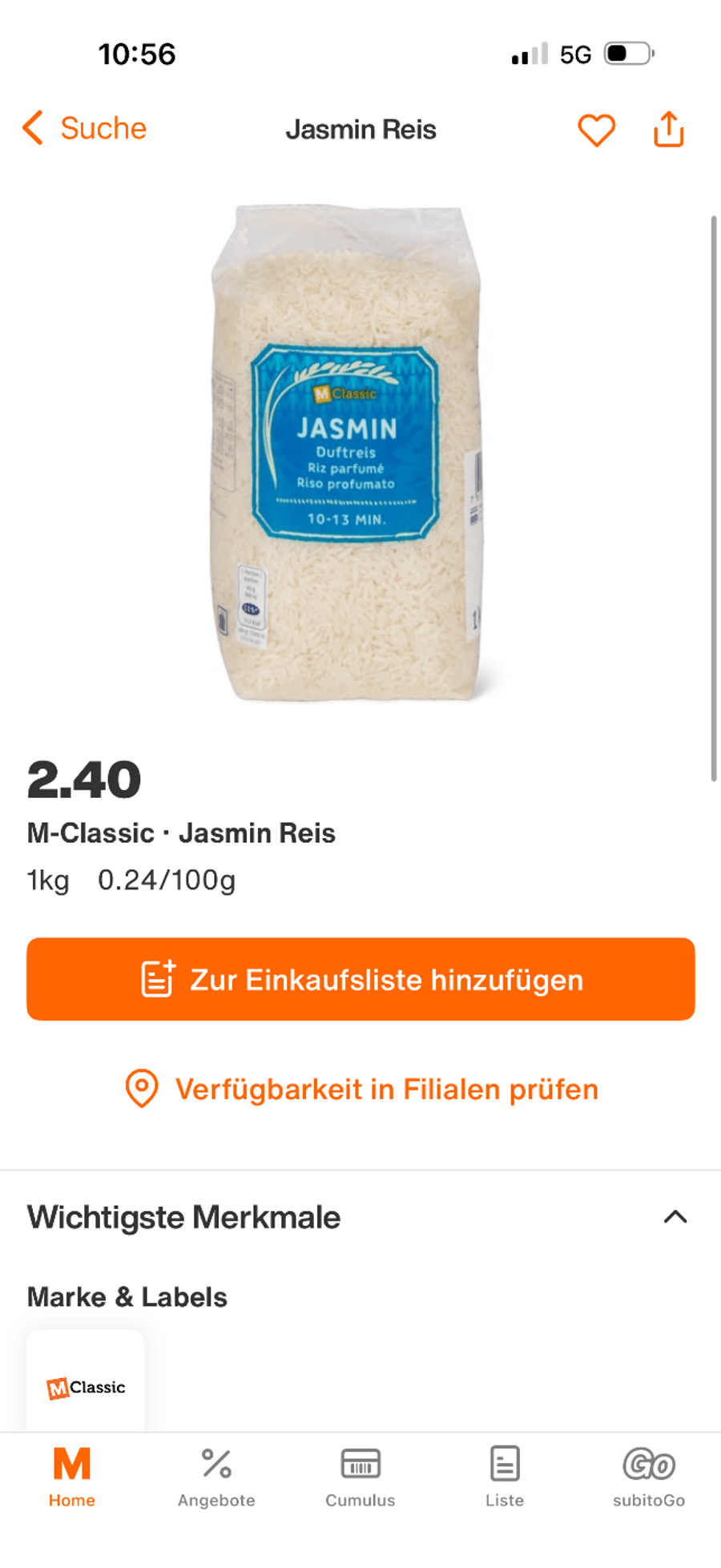 Wo ist der M-Classic Jasmin Reis geblieben?