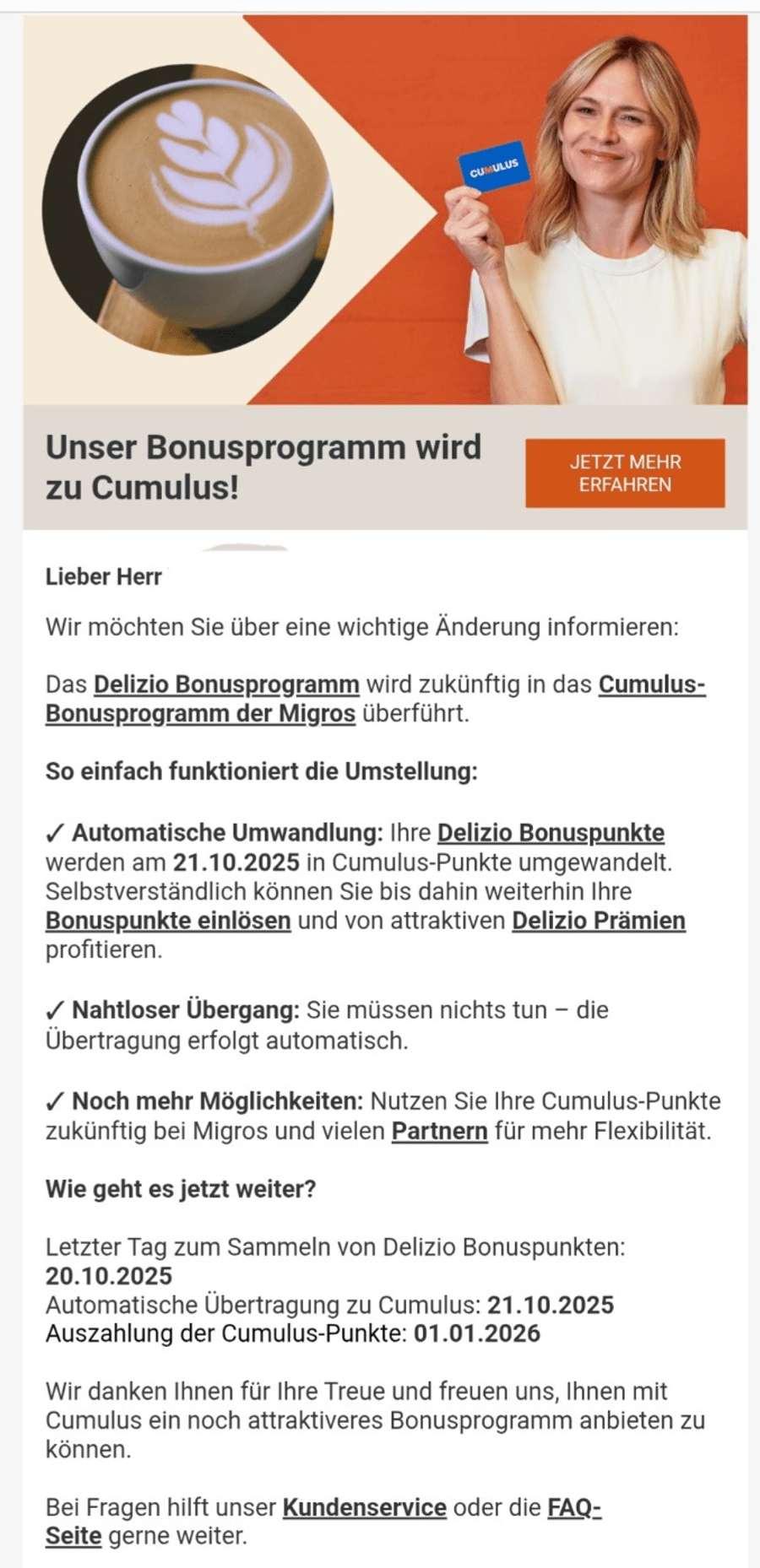 Which update? 🤔You can no longer find them because they become Cumulus, but you should read your emails from Delizio 😉https://www.migros.ch/de/content/delizio-bonusprogramm