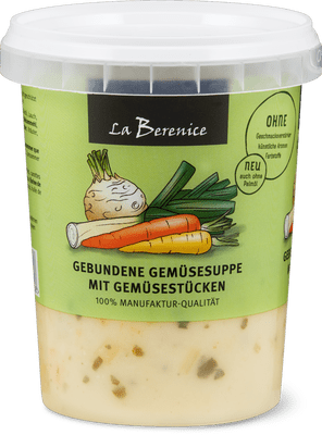 Hello Guido-1,we understand that the term "thickened" can give rise to expectations of a particularly creamy or thick soup. However, La Berenice AG's recipe deliberately focuses on a lighter consistency with pieces of fresh vegetables to offer a balanced taste experience. The aim is to create a harmonious balance between binding and freshness without making the soup too heavy or too thick. Kindregards, your M-Infoline team
