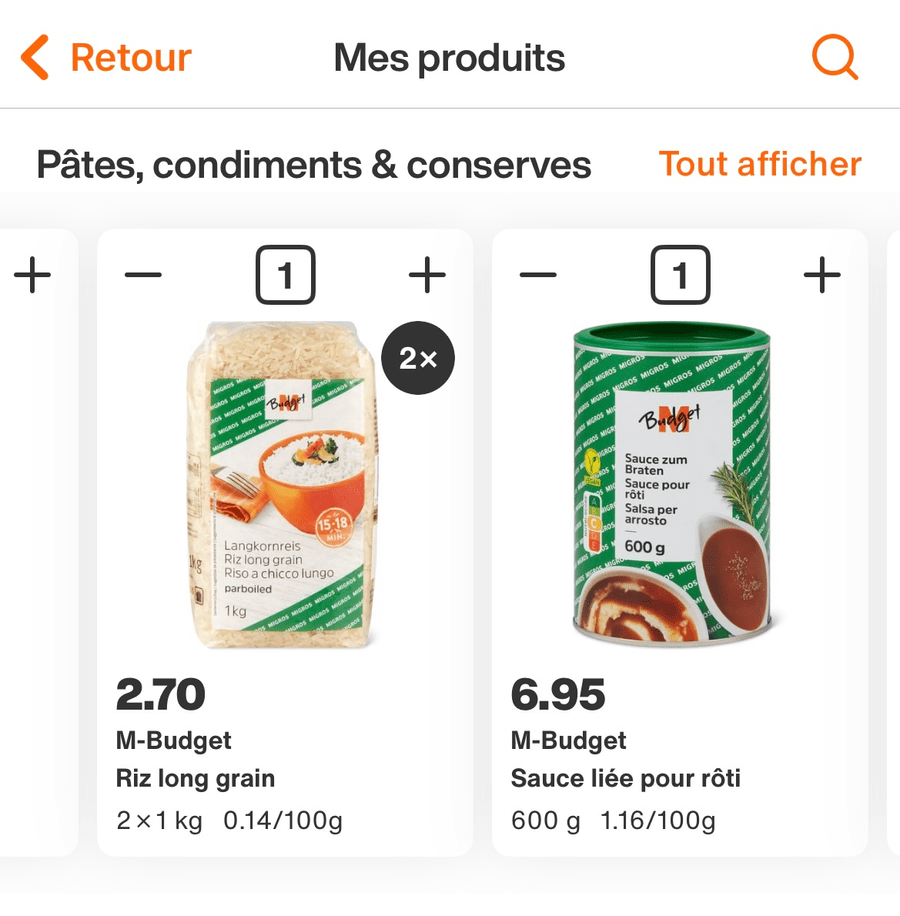 thank you very much for your reply. As the attached images show, the product concerned continues to appear in my Favorites under the M-budget brand. I can't find any "replacement product offered under the Migros brand" at a price as good as M-budget. Why is this? Is there no one in your department to proofread the ads you publish, which are read by millions of customers? I find this scandalous.