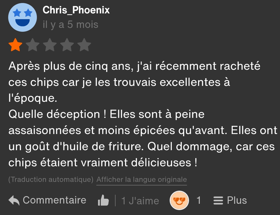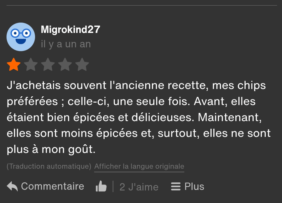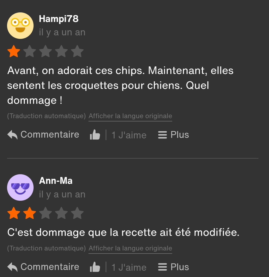 Thank you for answering me, I've just bought some and I'm disappointed, I was a fan of the old recipe, I bought some every day!