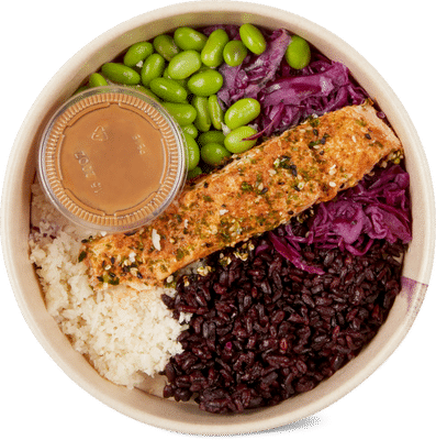 «The rice salmon bowl is described as very tasty and interesting, although some customers find the price high. Overall, the reviews are positive, highlighting the flavor.»