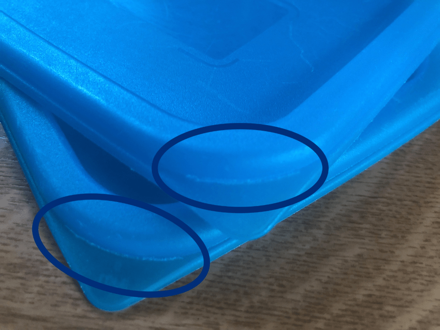 Hello, I bought several packs of freezer boxes about 1 year ago and several lids are damaged. The little tab is cracked and 3 have even broken. I had to throw the lids away, even though the box is still in good condition, but no longer really usable. I still have 2 damaged but usable lids, which I'm attaching as photos.