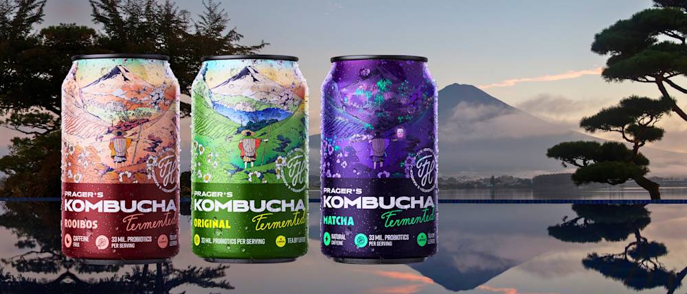 Ready for kombucha? Try PRAGER'S for free in three refreshing varieties