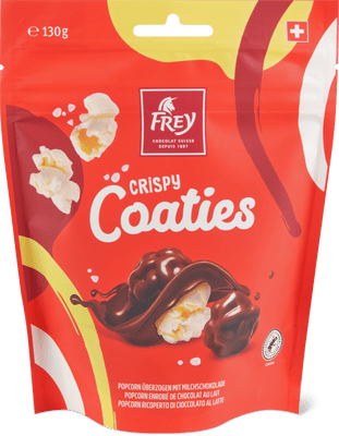 Calling all popcorn lovers! Frey now has something very special for you. We have created two brand-new popcorn varieties that will take your snacking experience to the next level: theBig Chunks packed with a bold mix of chocolate and deep-fried corn kernels and the delicious Coaties with salty popcorn coated in milk chocolate. Whether for a movie night, while on the go or simply for a snack – these creations are a must for all popcorn lovers. We are looking for 100 testers who would like to try the new varieties for free and then rate them on Migipedia. Which new flavour do you choose?