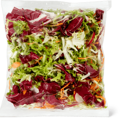 chicorée frisée *, chicorée rouge *, radis * 17%, carottes rouges * 17%. * de l’agriculture biologique