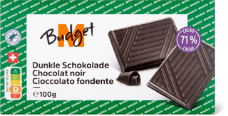 Dans notre assortiment M-Budget, tu trouveras actuellement des chocolats contenant au maximum 71 % de cacao, comme le chocolat noir M-Budget 71 % de cacao (27 g de sucre).