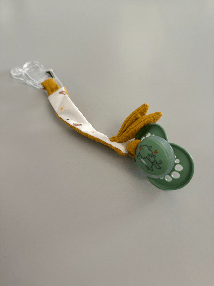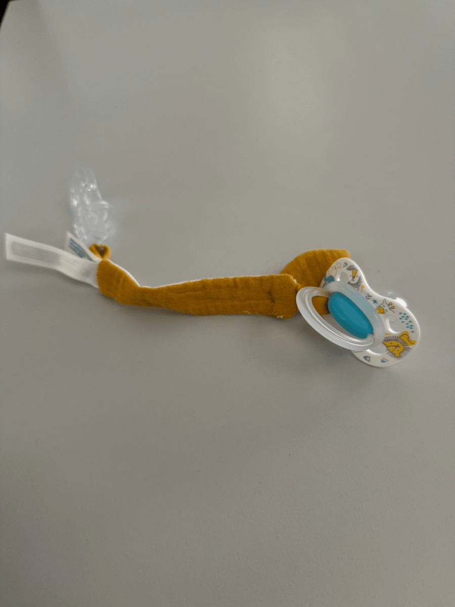 Bonjour lalalaland, merci beaucoup pour ta demande. Tu trouveras ci-dessous deux photos qui te montrent comment fixer la sucette. Si tu as un autre modèle de sucette, il n'est malheureusement pas possible de la fixer. Amitiés, ton équipe M-Infoline