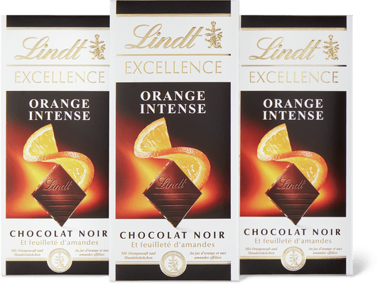 lot de 3, p. ex. Excellence orange intense, 3 x 100 g, 9.60 au lieu de 14.40, 100 g = 3.20, offre valable du 16.4 au 22.4.2026, jusqu’à épuisement du stock.