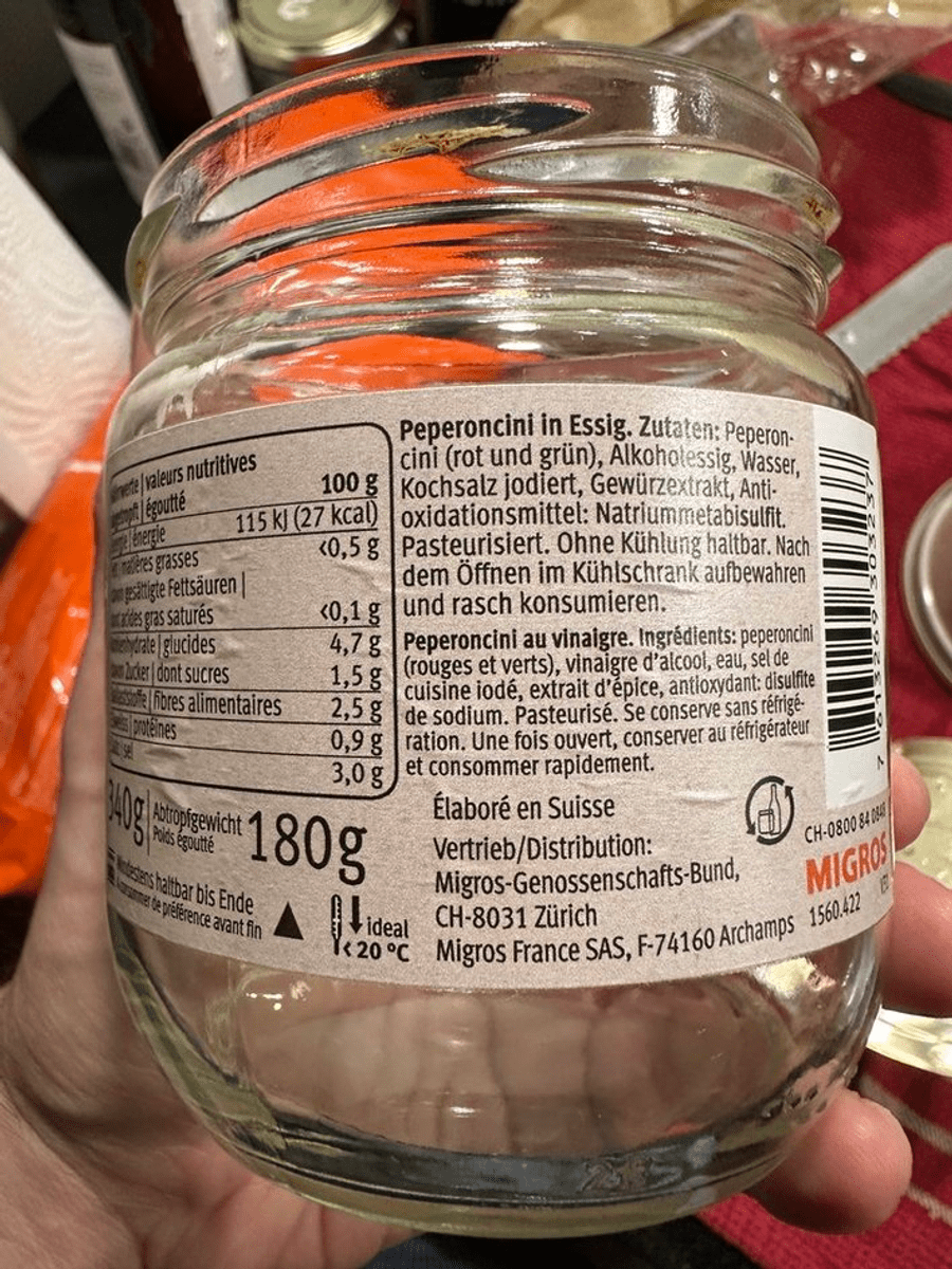 Il fornitore deve aver cambiato di recente. Prima i peperoncini avevano il codice a barre 7613269303237 e la qualità era eccellente. Ora la qualità è notevolmente peggiorata: I nuovi peperoncini sono più piccoli, spesso rotti o mollicci - che peccato! C'è qualche possibilità che i peperoncini vengano reintrodotti nella gamma con il precedente fornitore?
