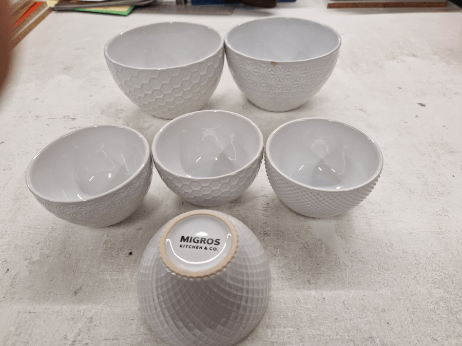 Nella collezione invernale erano disponibili, per un breve periodo (~prima di Pasqua), delle graziose ciotole bianche per muesli in set da due e delle ciotoline per salse in set da quattro. All'esterno presentavano dei delicati motivi. Anche lo smalto era bianco. Qualcuno ne ha da vendere o sa dove trovarle?