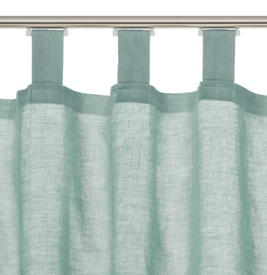 Tende di lino molto belle, molto piacevoli al tatto, per nulla graffianti. Anche l'installazione funziona senza problemi. È sufficiente tagliare i passanti se non sono necessari e fissarli al binario della tenda.