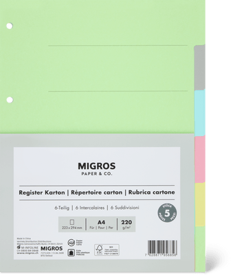 Migros Paper & Co. Rubrica cartone A4, 6 suddivisioni, colorate