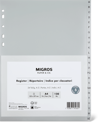 Migros Paper & Co. Indice per classatori A4, 24 pezzi A - Z
