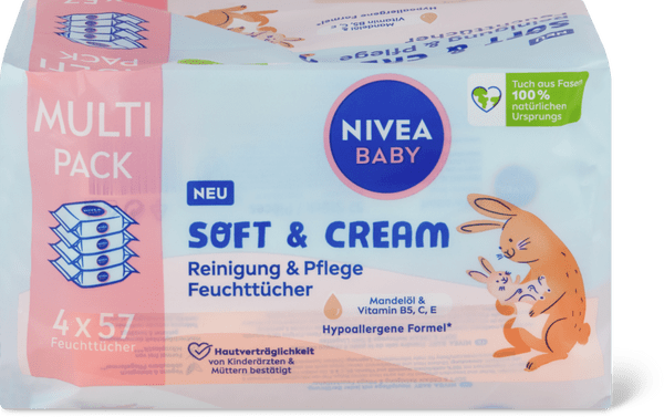Nivea Salviette umidificate Soft&Cream Olio di mandorle, vitamina B5, C, E